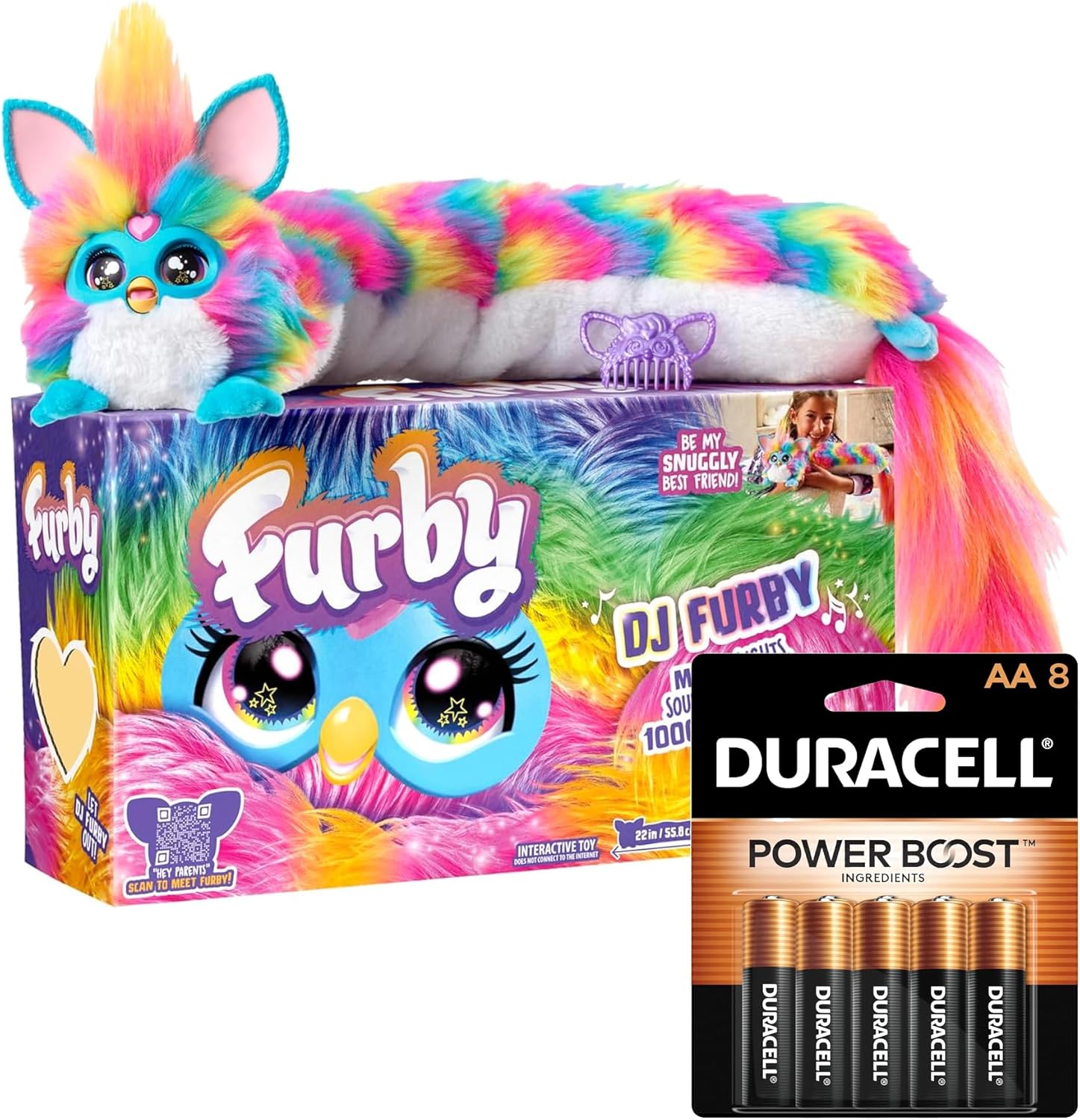 FURBY DJ Interactive Toy, Super Snuggly Rainbow Electronic Plush with Music, Lights, Motion, & Games, Speaks English & Furbish, 32in Long, Ages 6+